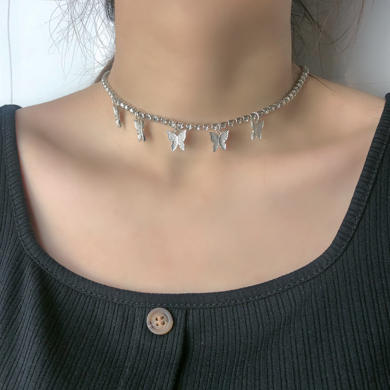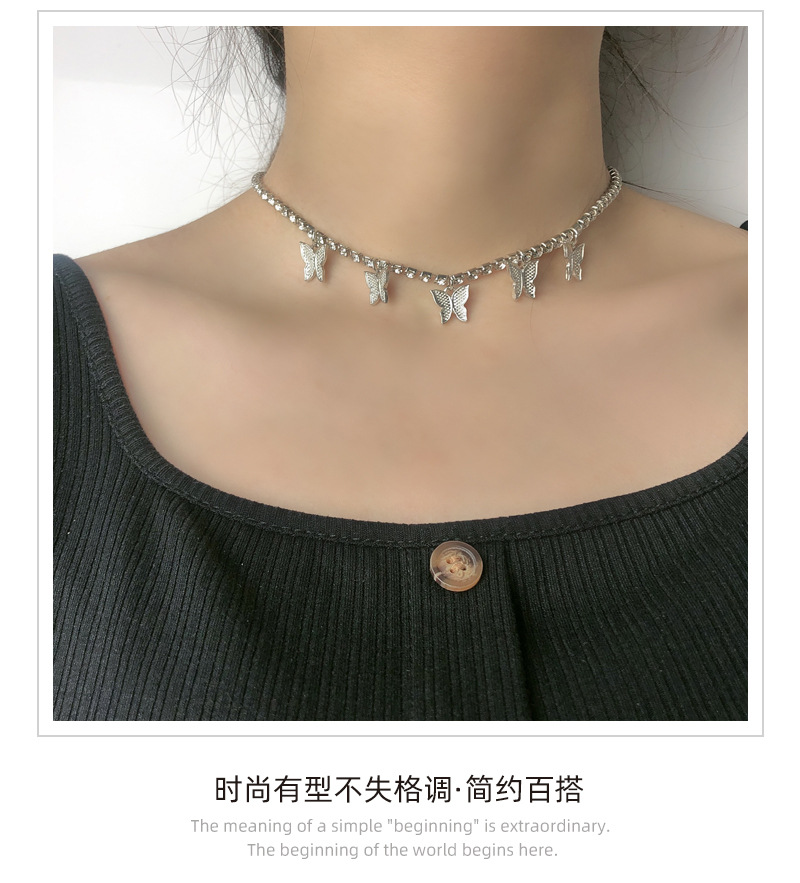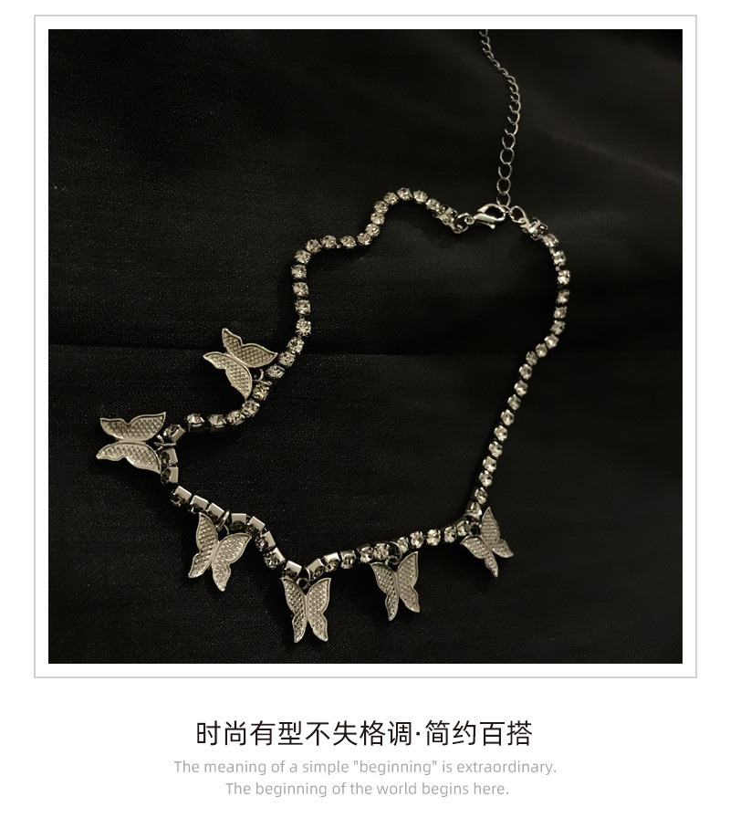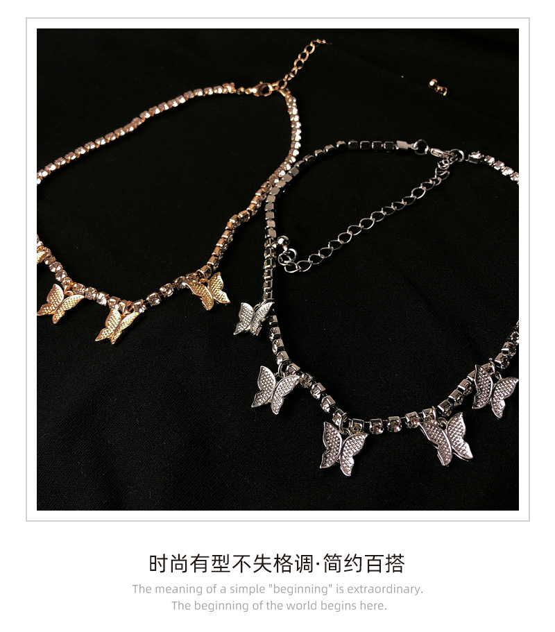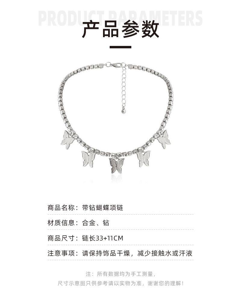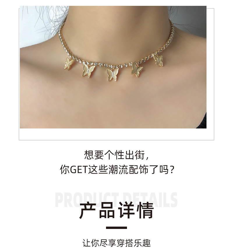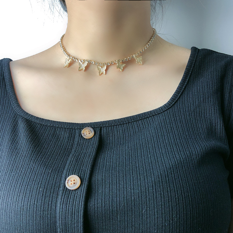 欧美夏日甜酷超仙网红同款闪亮蝴蝶吊坠锁骨链镶钻项链女饰品